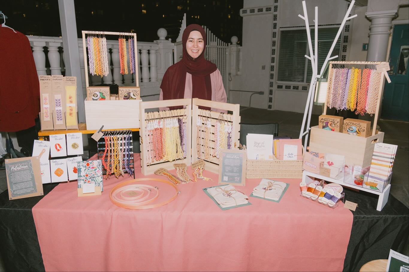 A lot of care and intention goes into crafting each piece. I seek to create and curate practical but beautiful products that I would (and do) use myself. My goal is to bring you unique tatreez supplies, handmade goods, upcycled pieces, and purposeful art that brings you joy and adds a little bit of color to your life. I am inspired by my heritage as a mixed Palestinian living in diaspora, my faith as a practicing Muslim, and the beauty of the mundane.